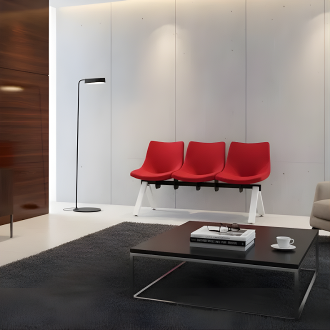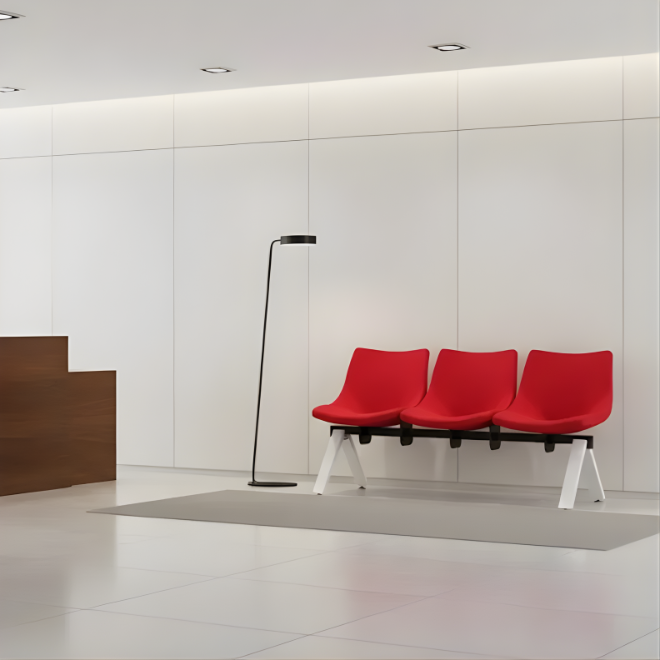 - Piètement chromé moderne et résistant, idéal pour les zones d’attente.