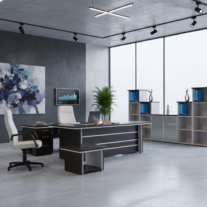- Bureau opérateur avec plateau en bois épaisseur 30 mm.