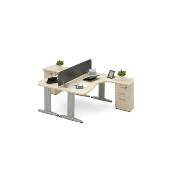 • Bureau de direction moderne avec plateau combinant MDF + bois, équipé d’un boîtier réseau et courant électrique avec sous-main détachable.