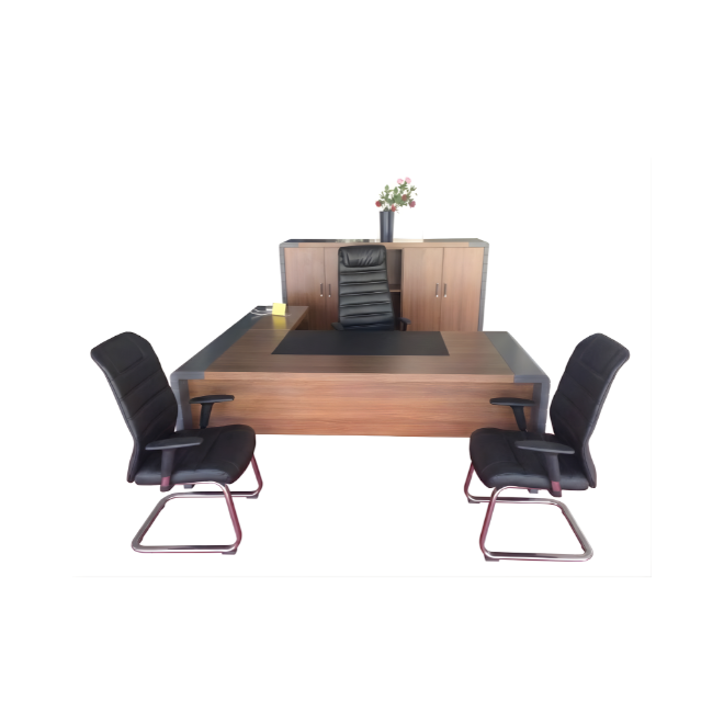 Bureau direction en MDF épaisseur 48 mm avec sous-main intégré en cuir.