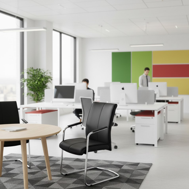 - Fauteuil visiteur fixe sur piètement luge stable et moderne.