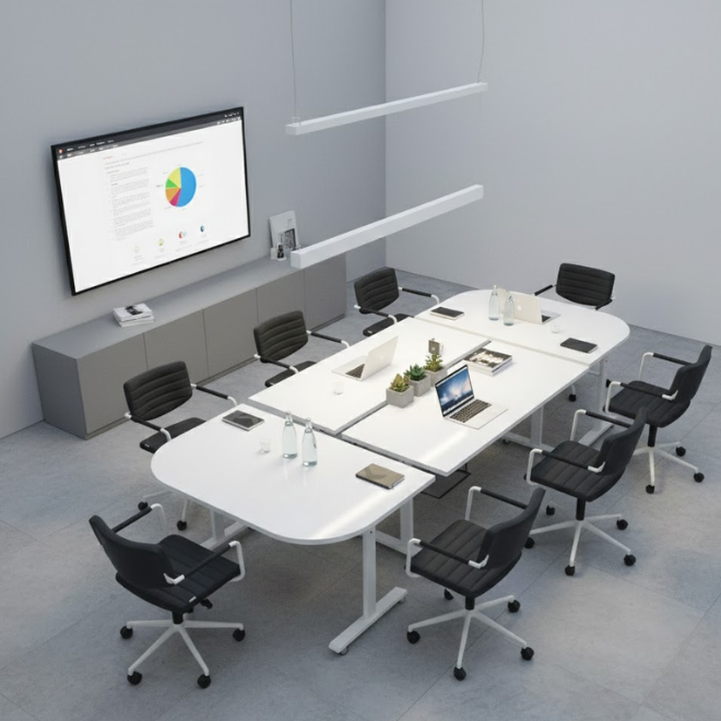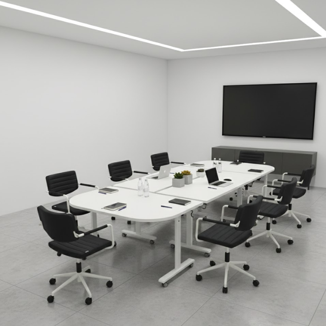 - Idéale pour les salles polyvalentes, les formations ou réunions rapides.
