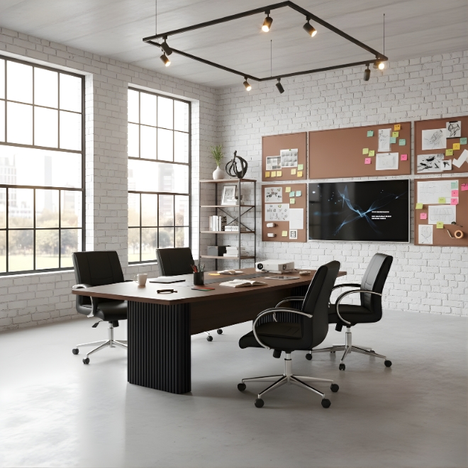 - Design contemporain allie élégance, robustesse et fonctionnalité, idéale pour les salles de réunion, espaces de direction ou bureaux de conférence.